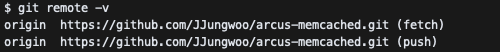 먼저 fork 한 프로젝트를 clone 하여 작업할 공간을 만든다. 그 다음 git remote -v 명령을 통해 현재 원격 저장소로 등록된 목록을 확인해준다.